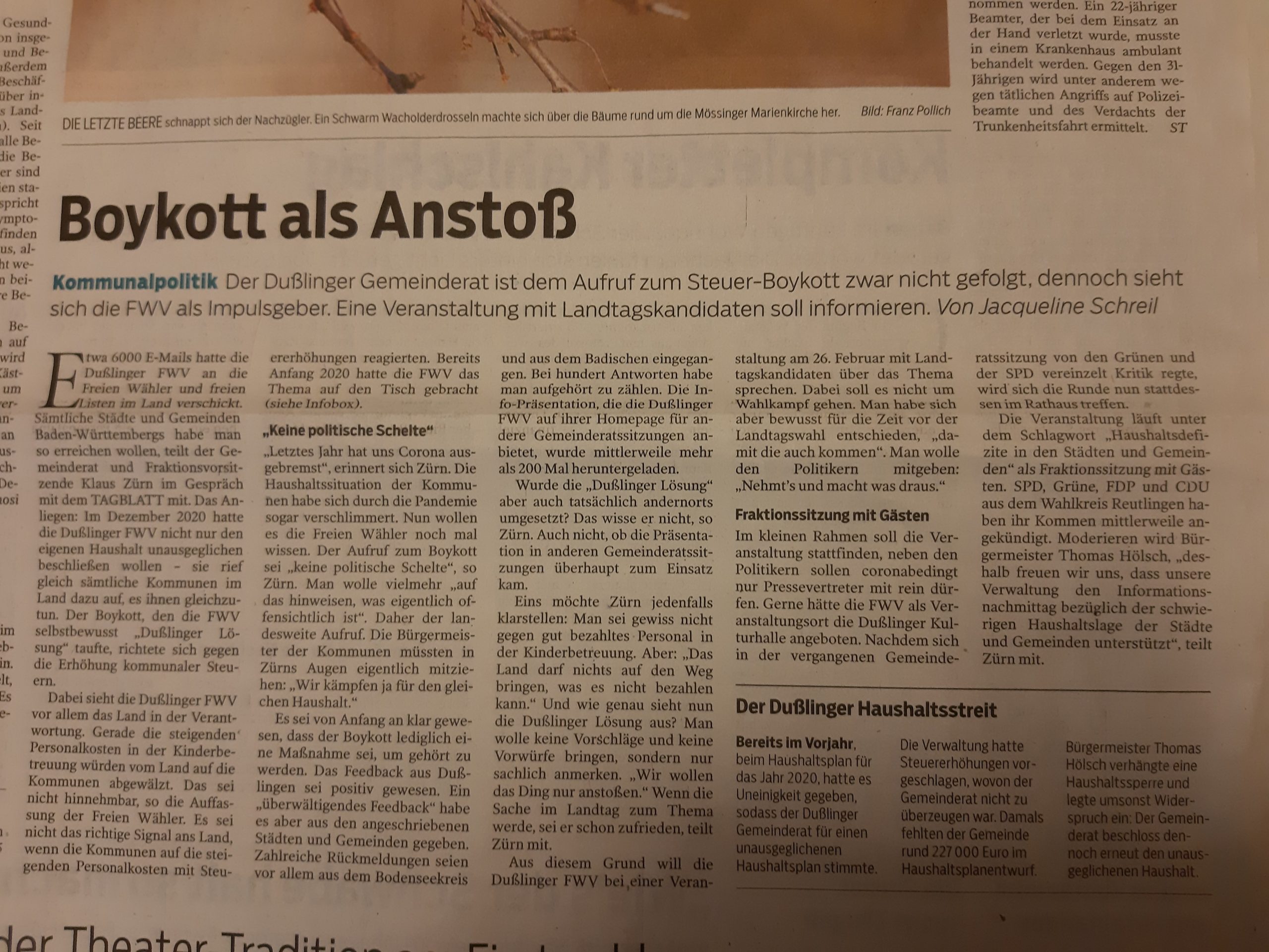 Boykott als Anstoß – Tagblatt 17.02.2021